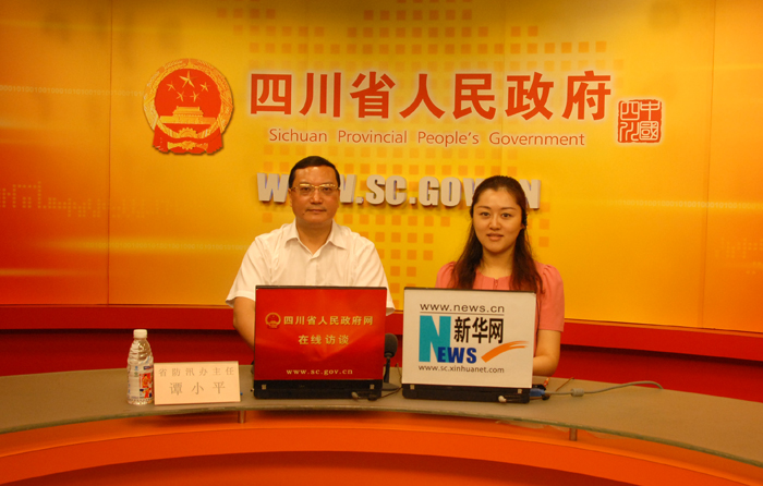 省防汛办主任谭小平同志接受四川省人民政府网站专访并与网友在线交流。图为谭小平进入省政府网访谈室。
