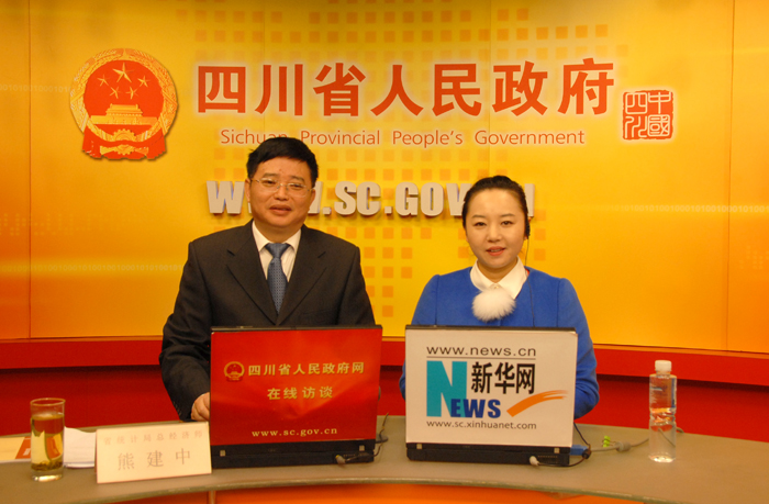 省统计局总经济师熊建中同志接受四川省人民政府网站专访并与网友在线交流。图为熊建中进入省政府网访谈室。