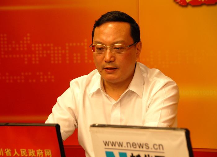 省防汛办主任谭小平同志接受四川省人民政府网站专访并与网友在线交流。图为谭小平认真浏览网友提问。