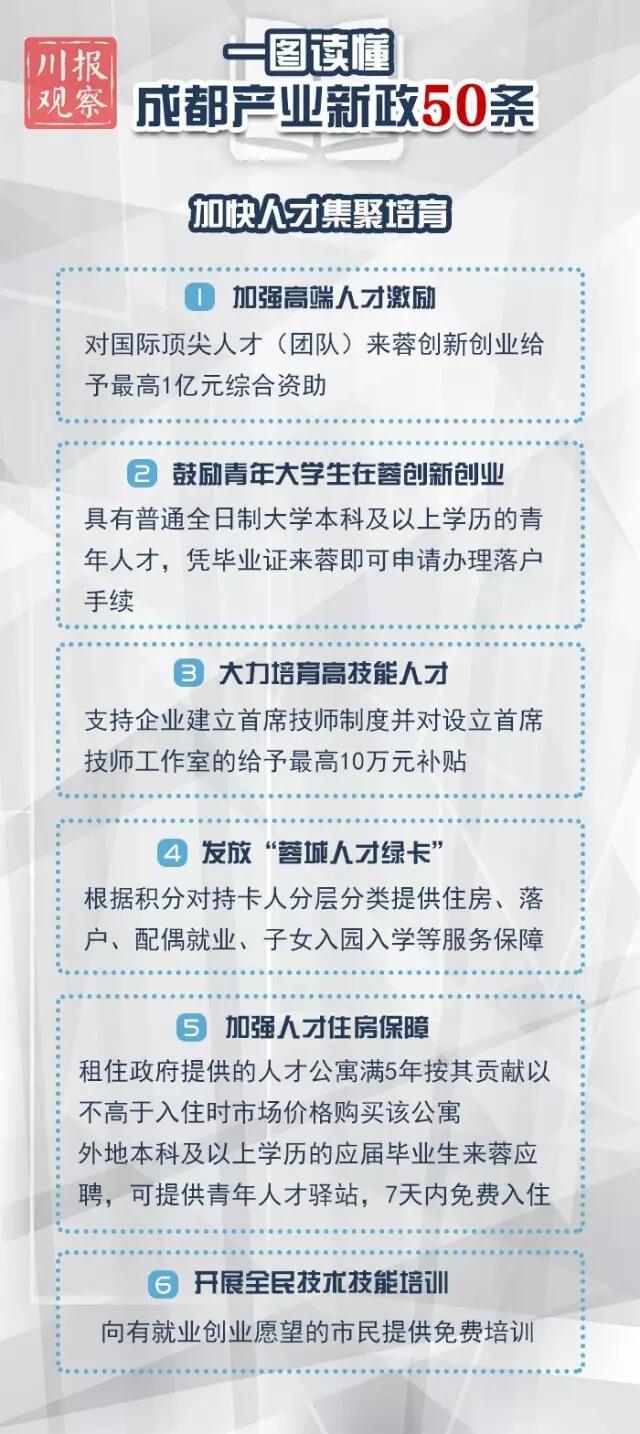 一图读懂成都产业新政50条干货!落户、租房、各种补贴都在这!
