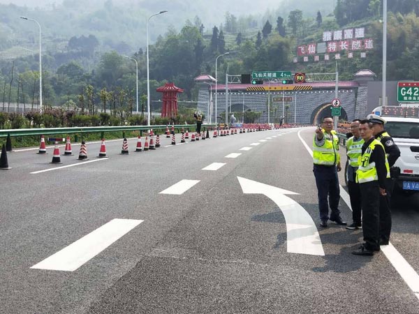 飞仙关隧洞施工 4月18日-23日雅康高速部分路段交通管制