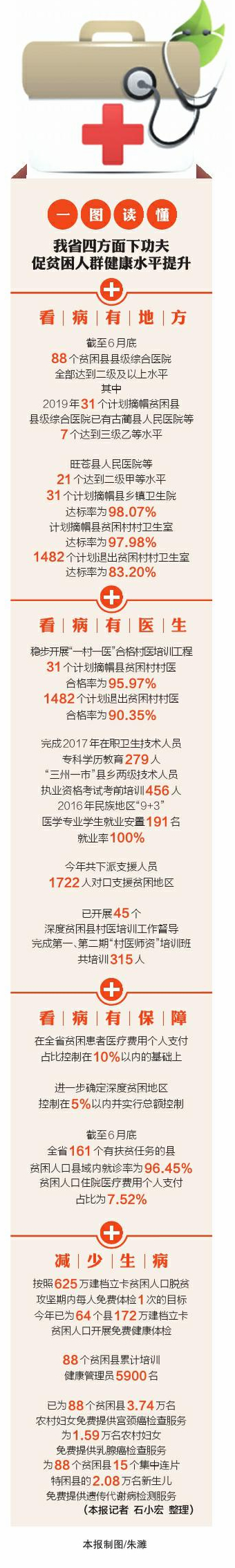 三要“少生病”。要让群众少生病,就要强化健康促进和卫生习惯养成。实行免费基本公共卫生服务,落实贫困人口家庭医生签约服务,加强妇幼健康工作和地方病、传染病监测与综合防治,是做好健康扶贫的关键。