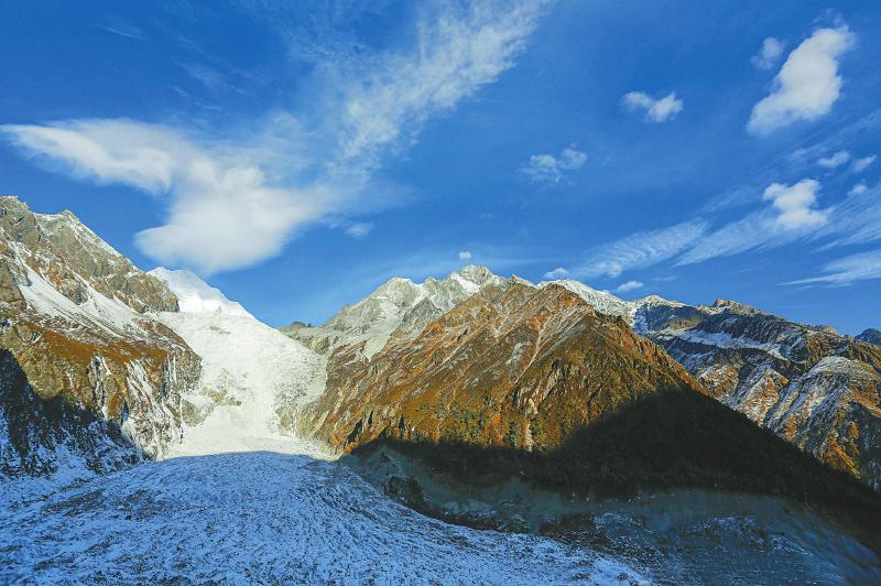 雪后初晴的贡嘎山。
