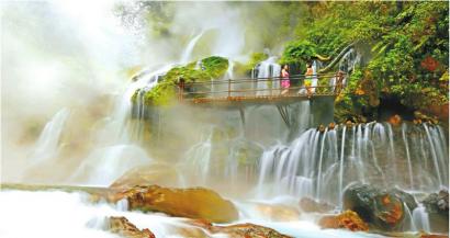 凉山州螺髻九十九里温泉:螺髻山温泉瀑布位于西昌市以南约39公里,常年40摄氏度的温泉水从半山悬崖上飞泻而下,其中最高一个瀑布落差50米,由上百个大小不一的温泉瀑布形成一个宽达200余米的温泉瀑布群,十分壮观。目前是全球唯一一个可观可赏可饮可泡的温泉瀑布,该温泉属于世界罕见的氡温泉。