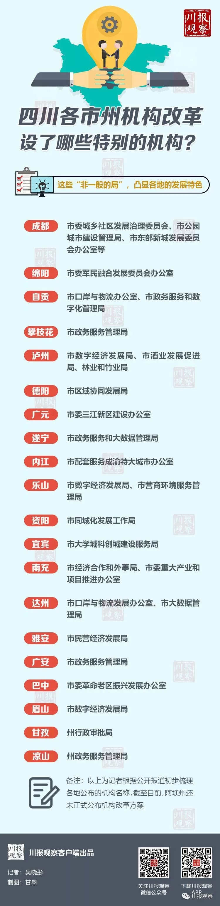 泸州市酒业发展促进局、成都市公园城市建设管理局……在川报观察记者梳理各市州机构改革方案过程,一个个别致的名字先蹦了出来。