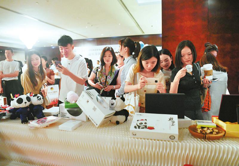 7月3日,与会嘉宾参观“三九大”文创产品。