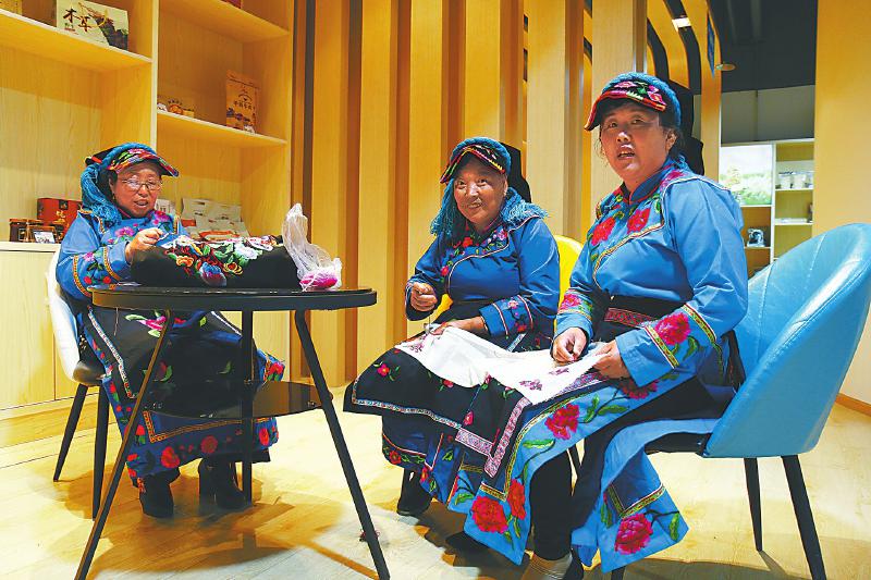 “这是咱们的传统手工艺产品,凝聚了60多位绣娘的辛苦和智慧。”泸定县指尖藏花贵琼藏绣专业合作社理事长贾生艳熟练地给游客介绍合作社和产品情况。