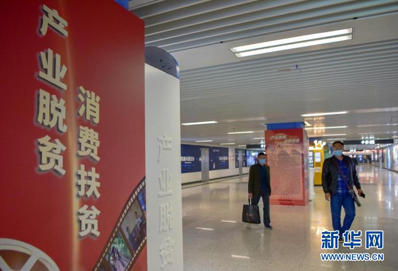 11月20日,“四川扶贫”产品展亮相成都地铁1号线。来自川西北高原地区、大小凉山彝区等四川脱贫攻坚“四大片区”的贫困村驻村第一书记、村党支部书记、乡村主播带着各自的特色农产品,在地铁站内直播“带货”。