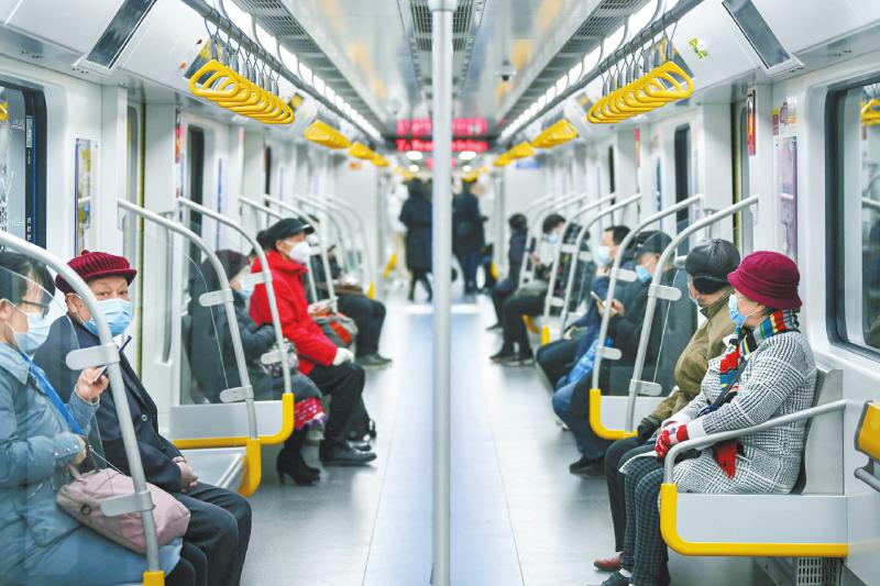 12月18日,成都轨道交通9号线车厢内的乘客。记者 杨树 摄