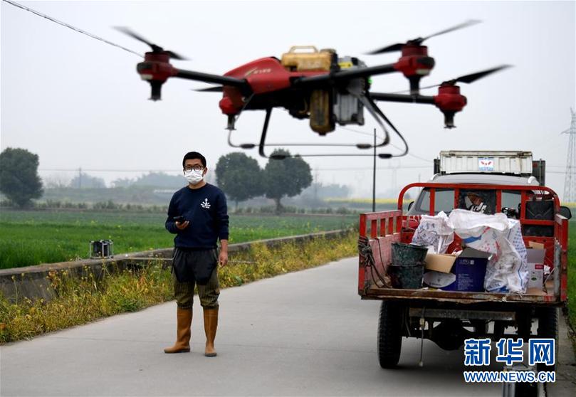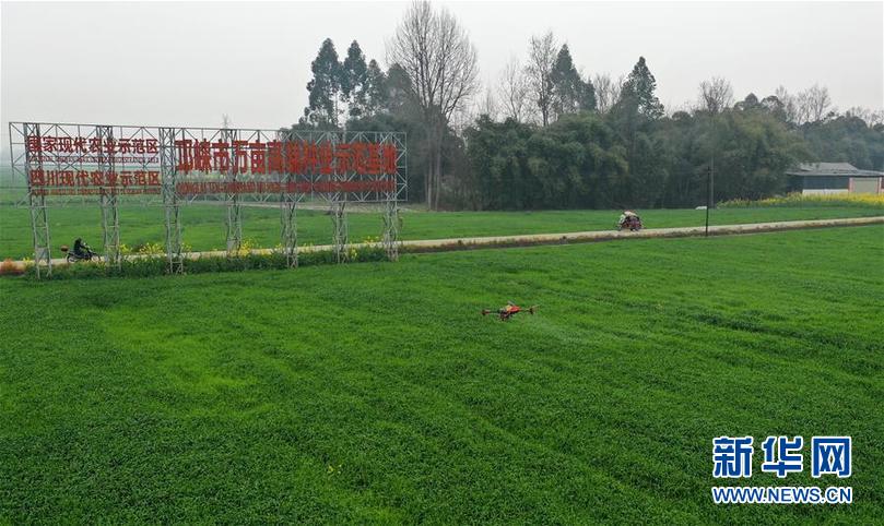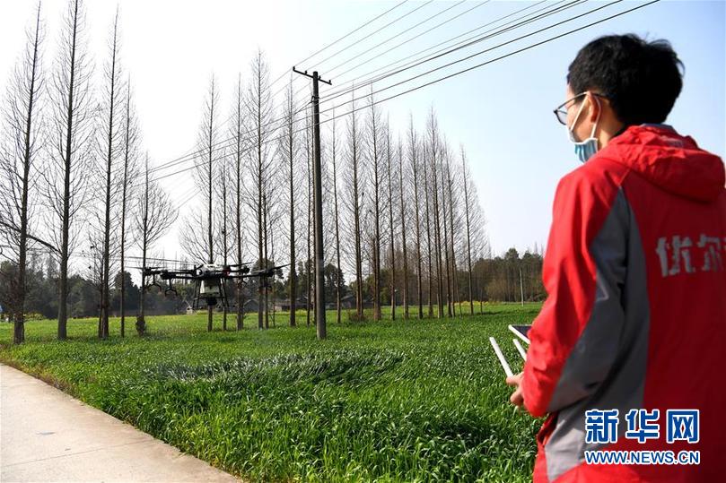 2月24日,在四川省邛崃市固驿镇,农技人员操控农业植保无人机。记者王曦摄