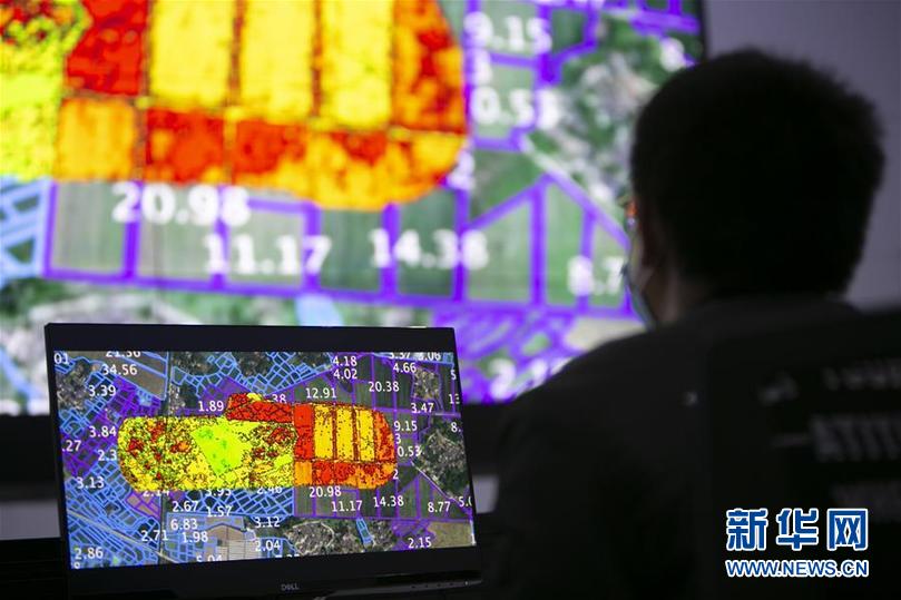2月24日,在位于四川省大邑县的四川润地数字农业中心,工作人员查看农田的多光谱图像。记者李梦馨摄