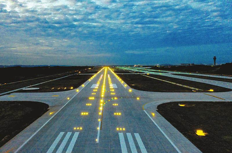 成都天府国际机场西一跑道完工并亮灯。记者 徐沛东 摄