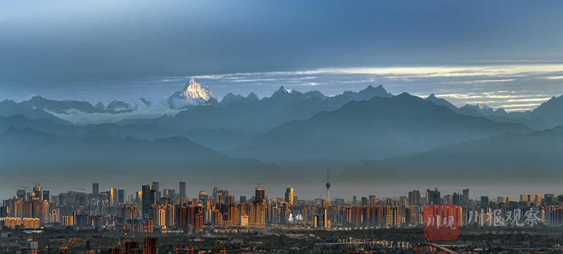 2020年8月25日,摄影师在成都市区能清晰地拍到雪山。嘉楠 摄