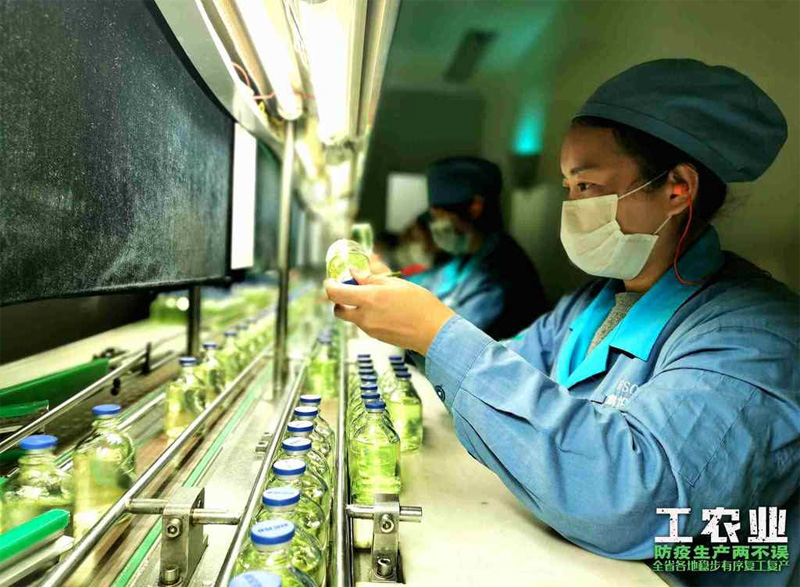 2020年2月中旬,四川科伦药业股份有限公司仁寿分公司,工人们正在生产车间忙复产。