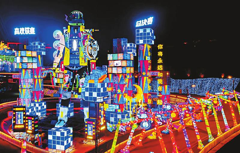 本届灯会以“观自贡灯·过中国年”为主题,由自贡市政府与文化和旅游厅共同主办,共策划“百年辉煌”“巴蜀一家亲”“自贡记忆”“万家灯火”“奇幻侏罗纪”“盐灯水运”等十五大主题,以主题化、场景化、互动化、娱乐化展现自贡彩灯精湛制作技艺和中华传统民俗魅力。(记者 秦勇文/图)