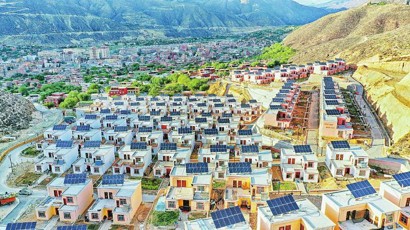 甘孜州巴塘县地巫乡甲雪村,一排排小楼房上的光伏板在太阳的照耀下闪闪发光。在成都市双流区对口援建下,地巫乡中真、甲雪、坝伙3个村易地搬到县城边“桃园地坞”新家。为帮助当地发展产业,双流区利用区内光伏产业优势,援助巴塘县建成投产甘孜州第一个村级光伏扶贫电站——巴塘县地巫乡甲雪村光伏扶贫电站。记者 何海洋 摄