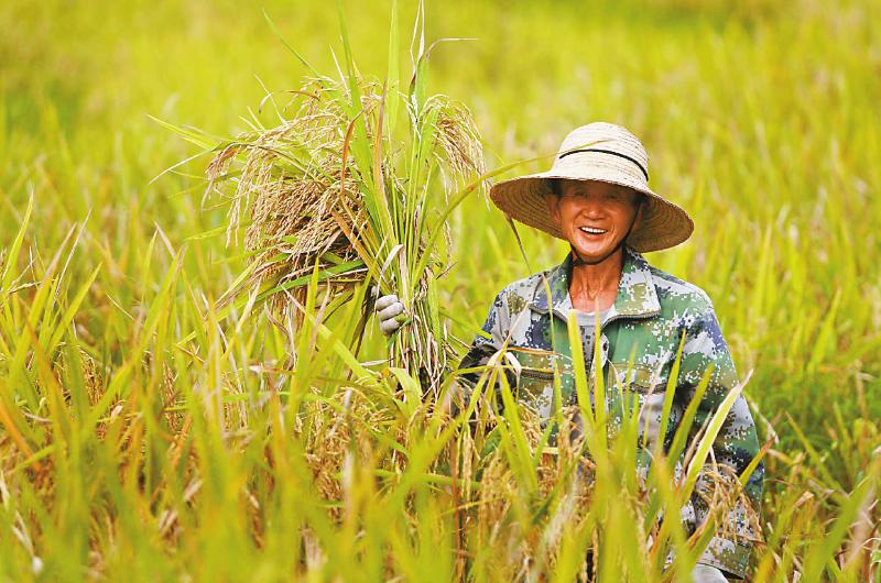 9月11日,崇州市2021年水稻收割开镰仪式在崇州都市农业产业功能区黎坝村举行。 崇州市融媒体中心供图