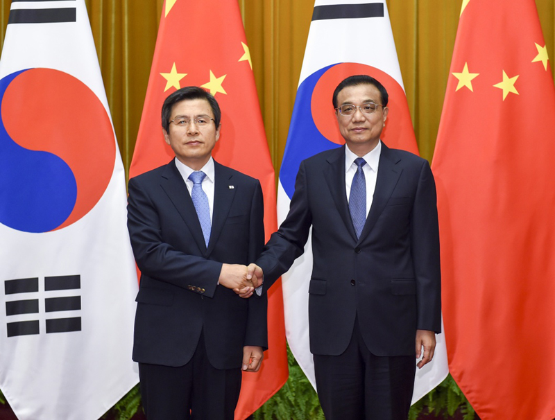 国务院总理李克强28日下午在人民大会堂同来华访问并出席2016年夏季达沃斯论坛的韩国国务总理黄教安举行会谈。