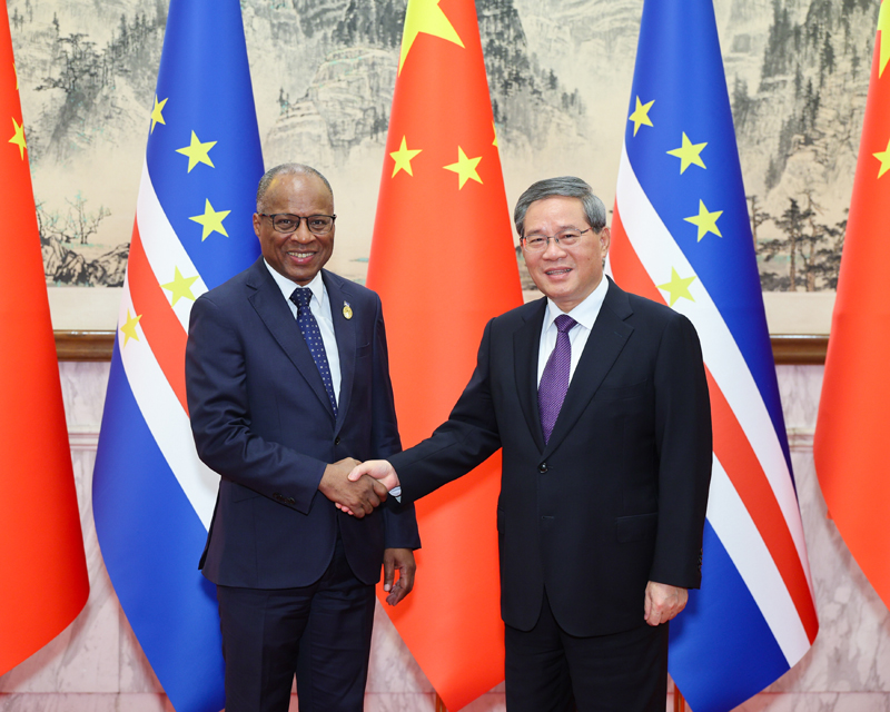 9月4日上午,国务院总理李强在北京钓鱼台国宾馆会见来华出席中非合作论坛北京峰会的佛得角总理席尔瓦。新华社记者 刘彬 摄