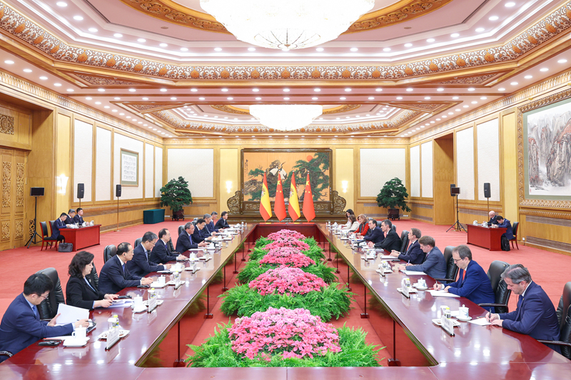 李强指出,中国愿同西班牙进一步加强发展战略对接,充分发挥产业互补优势,持续释放贸易投资合作潜力,实现更高水平的互利共赢。中方愿进口西班牙更多优势产品,支持两国企业深化在人工智能、数字经济、新能源等新兴领域合作,拓展绿色发展合作空间。双方要全面加强文化、教育、青年、科技、旅游等领域合作,夯实两国友好的民意基础。