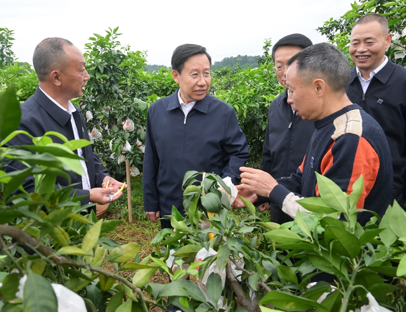 10月19日,省委书记王晓晖到仁寿县大化镇水利社区调研,走进柑橘种植基地与种植大户交流,询问种植收成、柑橘产业助农增收情况。