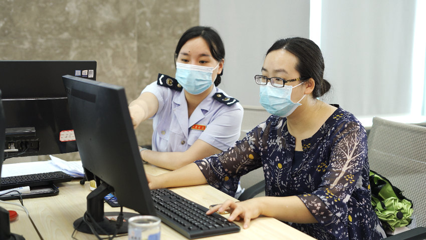 税务干部指导企业人员办理跨省迁移业务。四川省税务局供图