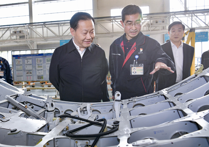 省领导范锐平、王铭晖、王凤朝,航空工业成都飞机工业(集团)公司主要负责同志,省直有关部门负责同志参加调研。(记者 张守帅 摄影 欧阳杰)