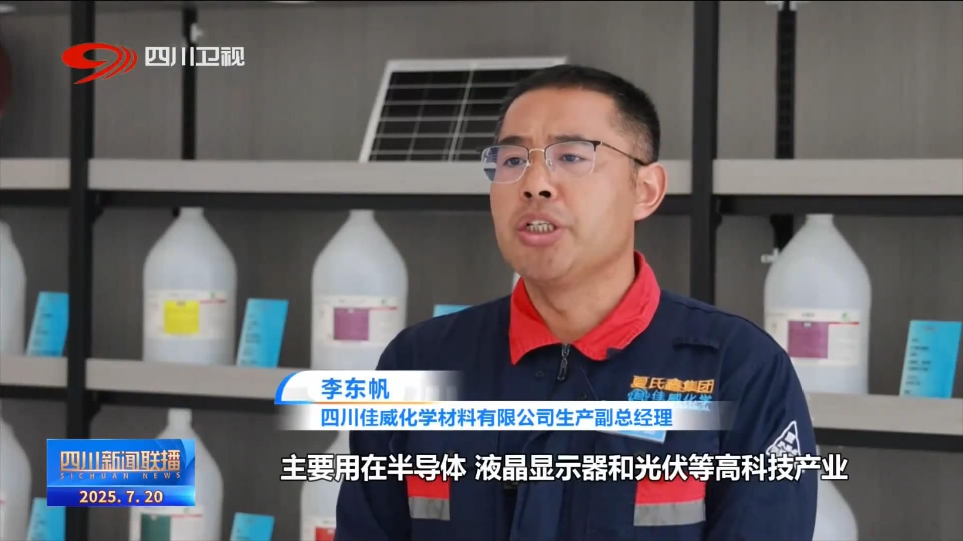 四川佳威化学材料有限公司生产副总经理 李东帆:主要用在半导体、液晶显示器和光伏等高科技产业,市场上对高纯度的电子化学材料需求越来越大,我们的量产可以说是打破了西南地区电子级硝酸基本依赖江浙供应的局面,填补了西南地区的市场空白。