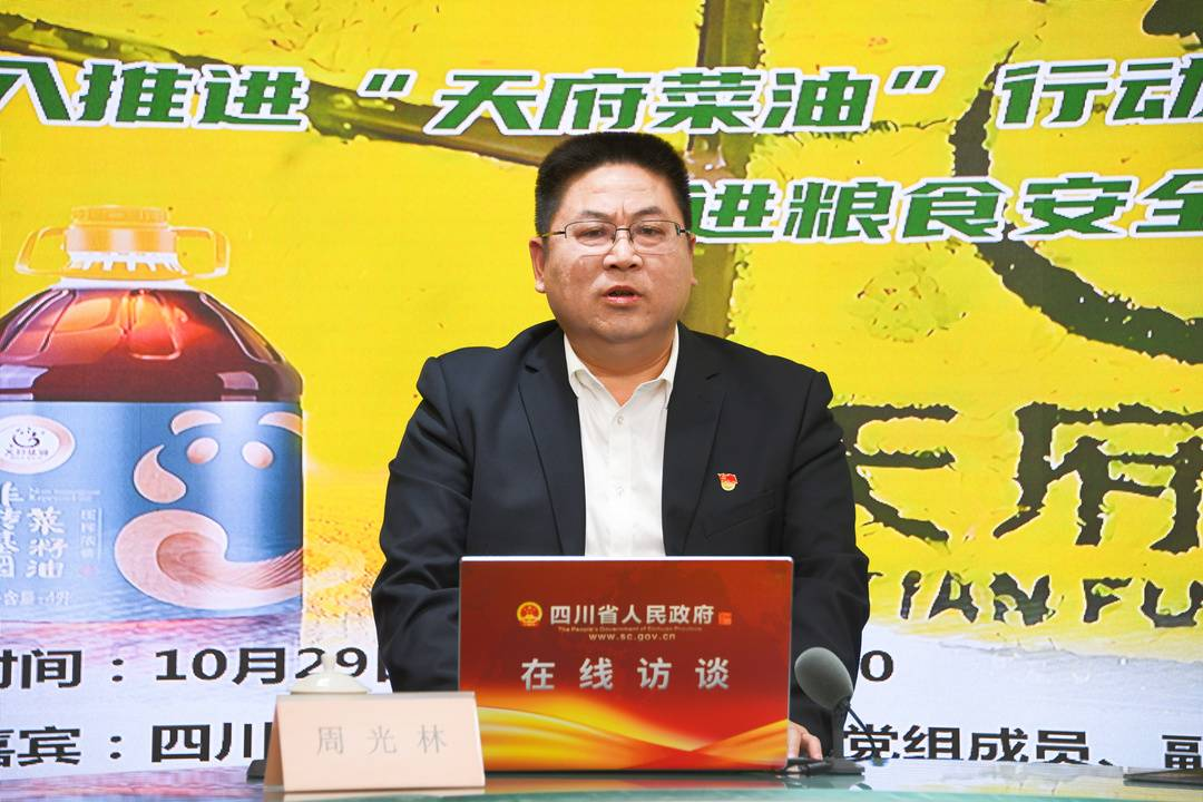 近年来,四川聚焦“天府菜油”省级粮油区域公共品牌建设,统筹推进油菜全产业链发展,推动四川由油菜生产大省向油菜产业强省跨越取得了明显成效。10月29日,四川省粮食和物资储备局副局长周光林做客四川省人民政府网站在线访谈栏目,与广大网友进行在线交流。