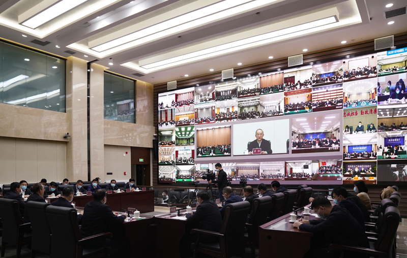 会议以视频会议形式开至县一级。副省长罗强、叶寒冰、田庆盈、胡云,成都市市长王凤朝,省政府秘书长等在主会场参加会议。(记者 李淼 摄影 田为)