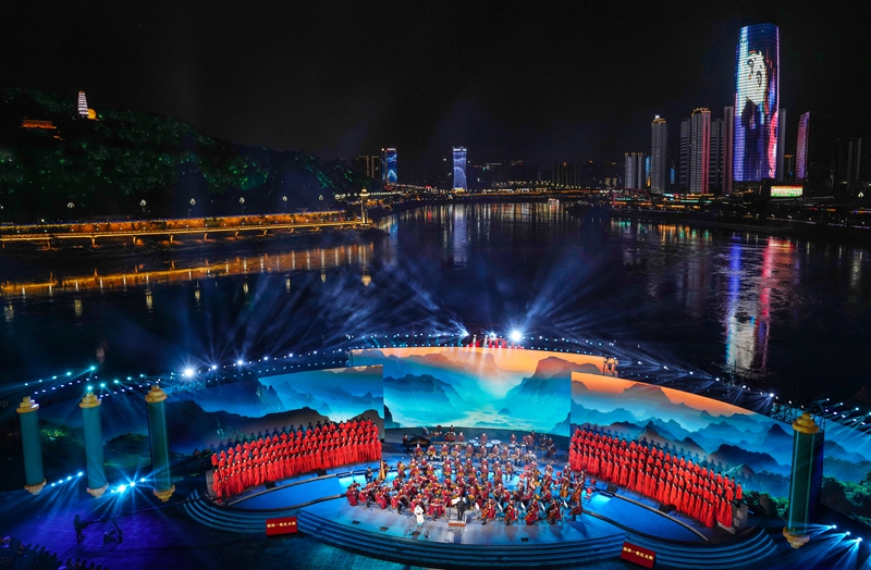 开幕式后,在绚丽的无人机灯光秀中,由著名指挥家汤沐海、歌唱家王宏伟等和中国交响乐团、四川交响乐团、宜宾学院合唱团等单位联袂带来的“我住长江头”交响合唱音乐会精彩上演。音乐会紧紧围绕“歌颂祖国、弘扬中华母亲河——长江文化、展现四川特色风土人情”主题精心设计编排,既包括《长江之歌》《滚滚长江东逝水》《太阳出来喜洋洋》等经典曲目,也有《过三峡》《抛天锣》等新时代佳作,融恢弘壮丽的交响大合唱、器乐演奏和悠扬深情的独唱、对唱与重唱于一体,展现出从巴山蜀水到江南水乡的千年文脉和万里长江的蓬勃生机与活力,唱响新时代长江大合唱,吹响保护好、传承好、弘扬好长江文化的号角。在全场大合唱《歌唱祖国》的热烈氛围中,音乐会圆满落下帷幕。