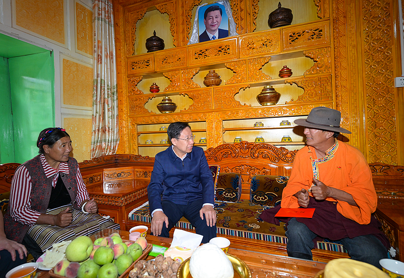 9月16日,省委书记、省人大常委会主任王晓晖到得荣县白松镇日当村调研,在脱贫户曲错家中,与一家人促膝交谈,关切询问家庭收入、医疗保障、子女上学等情况。