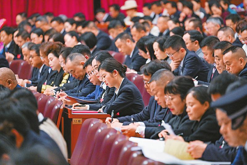 一月二十二日,代表们认真听取政府工作报告。记者 何海洋 摄