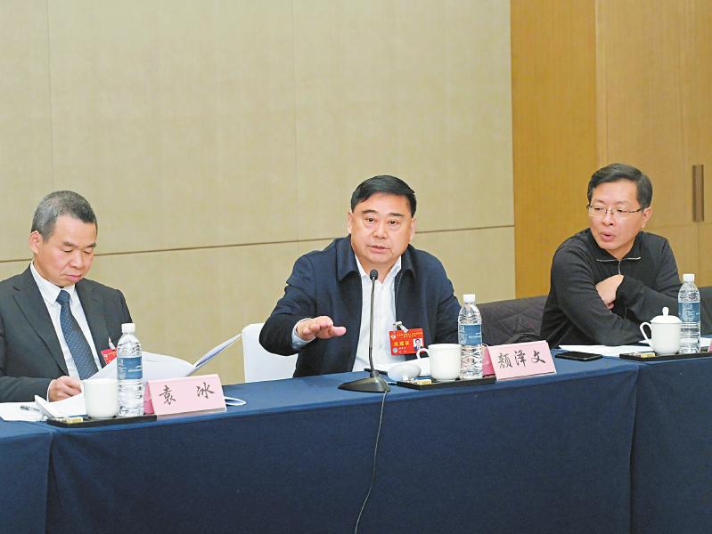 1月19日,颜泽文委员(中)在省政协十三届三次会议小组会议上发言。记者 郝飞 摄