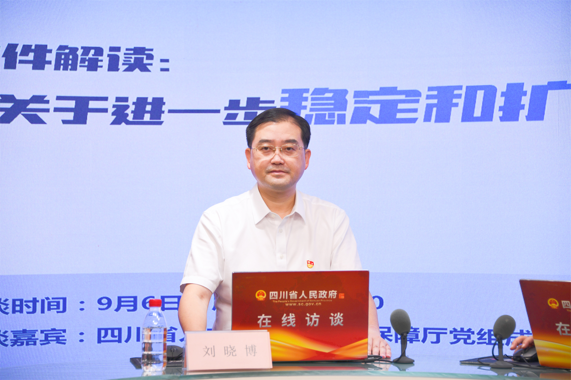 四川省人民政府办公厅近日印发《关于进一步稳定和扩大就业若干政策措施》,从激发活力扩大就业容量、突出做好高校毕业生等青年就业工作、促进其他重点群体就业、强化就业帮扶和服务四方面,提出20条政策措施。9月6日,四川省人力资源和社会保障厅党组成员、副厅长刘晓博来到省政府网站在线访谈直播间,就《政策措施》内容进行解读,并与广大网友在线交流。