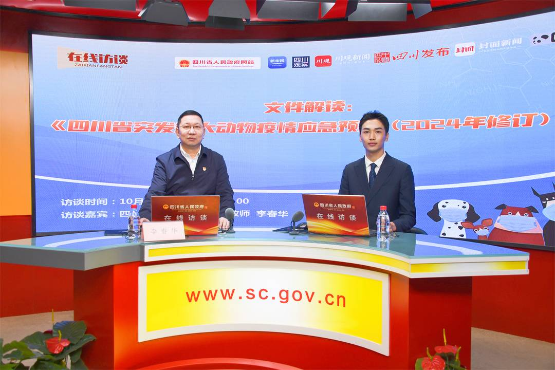 近日,四川省政府办公厅印发《四川省突发重大动物疫情应急预案(2024年修订)》(以下简称《应急预案》)。10月11日,四川省农业农村厅总畜牧师李春华做客四川省人民政府网站在线访谈栏目,为广大网友解读《应急预案》的有关内容。据悉,这是该预案18年来的首次修订。
