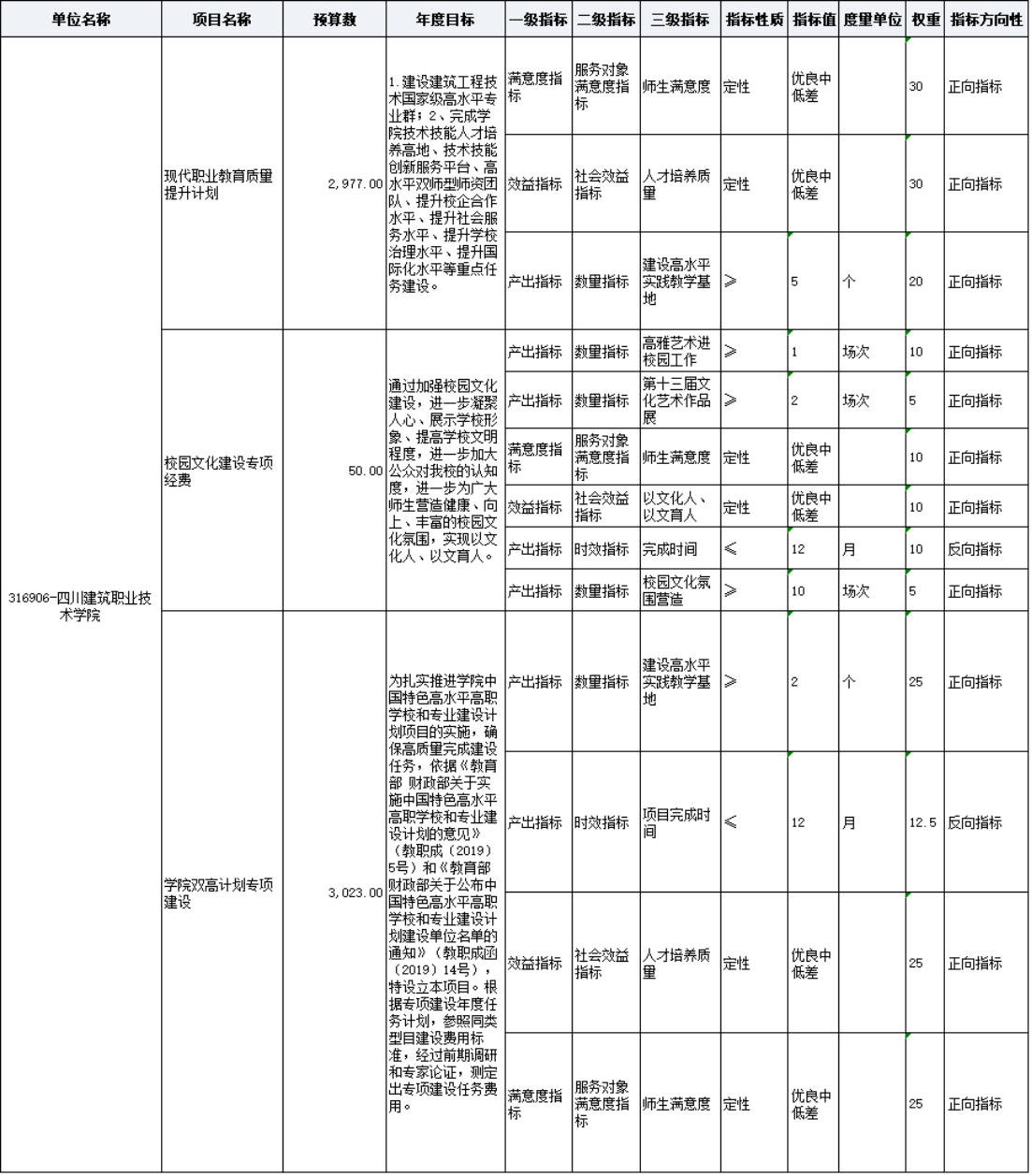 (四)教育支出(类)职业教育(款)高等职业教育(项):指四川建筑职业技术学院的高等职业教育支出。