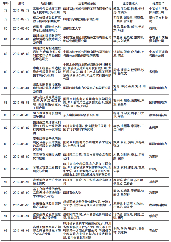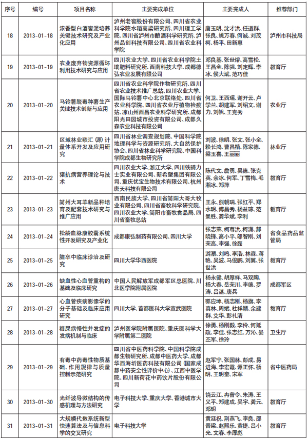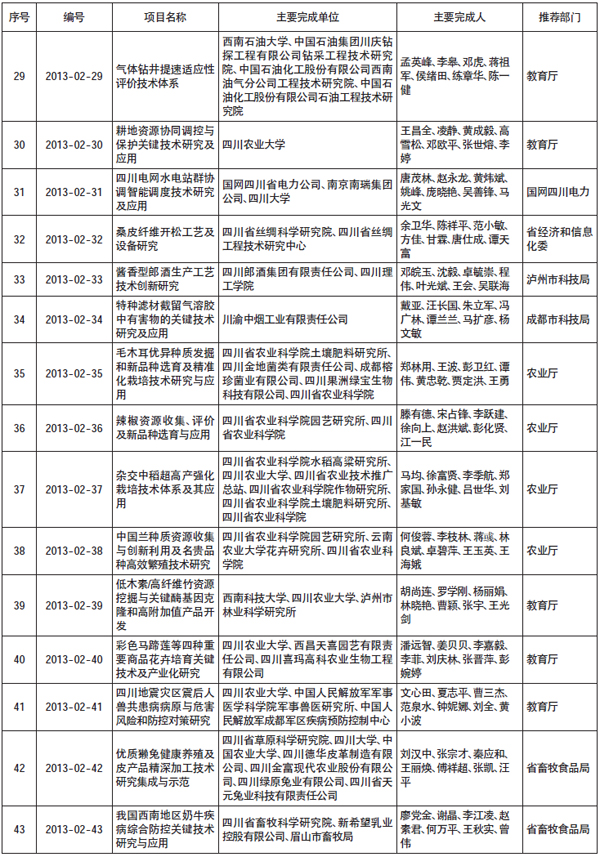 四川省人民政府关于授予2013年度四川省科技进步奖的决定