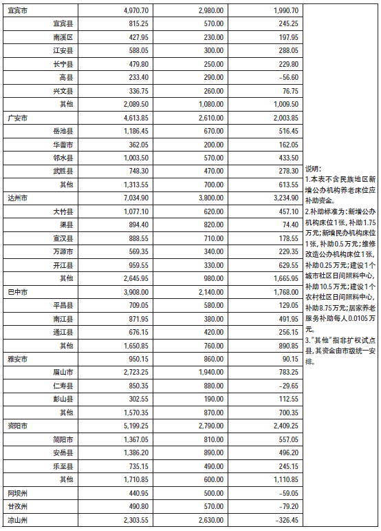 对公办养老机构新增和维修改造床位,省级补助资金按目标任务和补助标准拨付到市、县两级,超额完成部分纳入第二年工作量计算。市、县(市、区)人民政府要加大养老服务体系建设资金投入,落实配套资金,按照补助标准和资金使用要求,安排用于新增和改造养老床位。