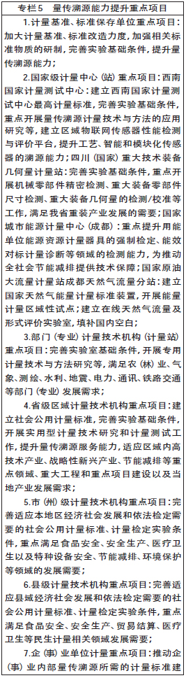 (七)统筹规划,提升量传溯源能力。进一步加强对社会公用计量标准的监督管理,科学规划量传溯源体系,统筹社会公用计量标准建设,加快计量标准装置更新改造步伐,全面提升各级计量技术机构量传溯源能力,保证量值准确可靠。