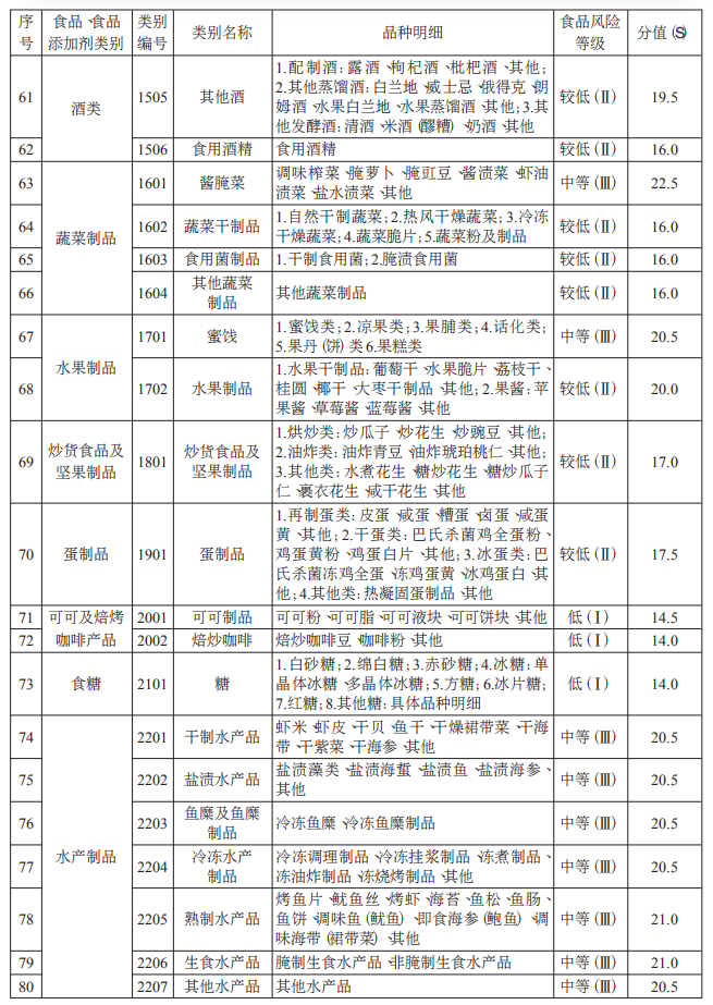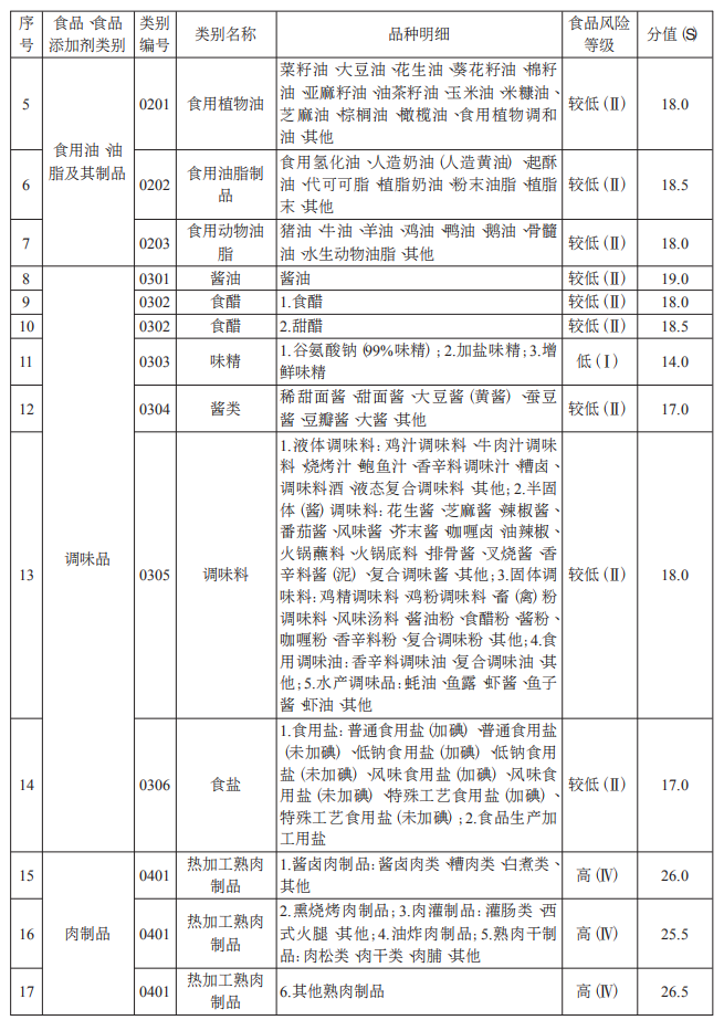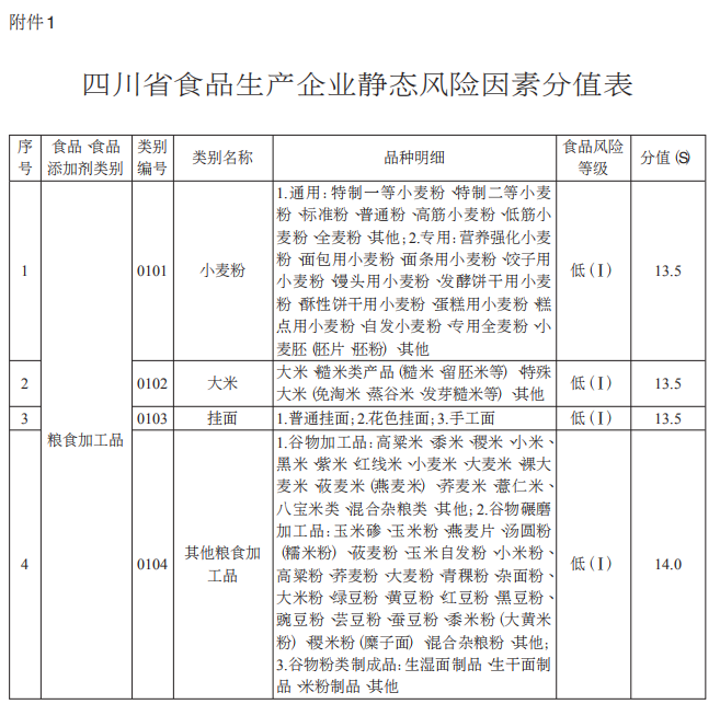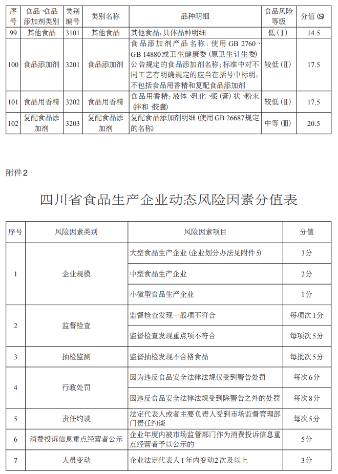 各风险因素具体按照《四川省食品生产企业动态风险因素分值表》(附件2)量化打分。