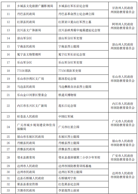 四川省人民政府关于命名第三批省级国防教育基地的通知